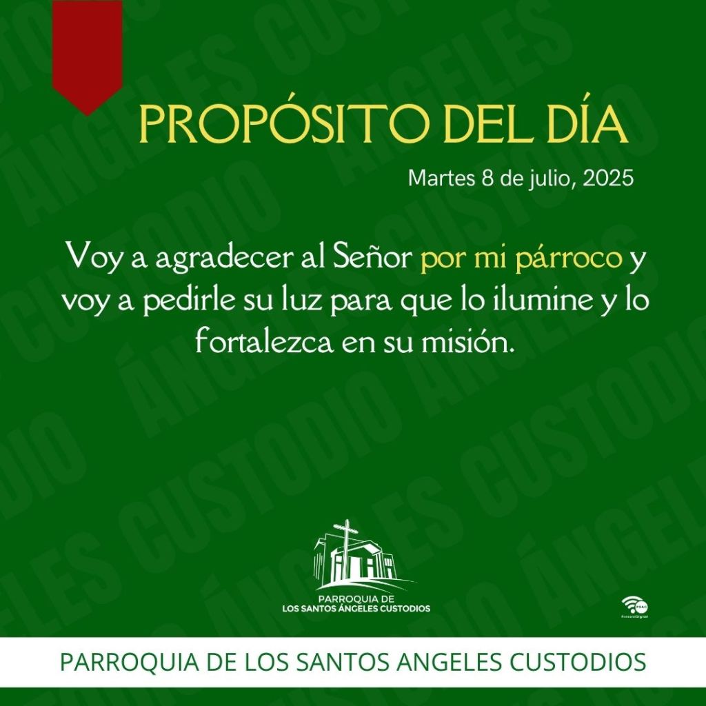 Contenido publicado originalmente en los canales de las Parroquia De Los Santos Ángeles Custodios, PSAC, por la Pastoral Digital, bajo en link: http://www.parroquiaangelescustodios.org – Puede copiar esta información en su Blog citando siempre la la referencia a esta fuente consultada. Para compartir en sus redes sociales, utilice los botones compartir. Conozca términos legales – Pastoral Digital PSAC