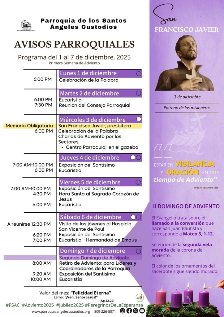 Contenido publicado originalmente en los canales de la Parroquia De Los Santos Ángeles Custodios, PSAC, por la Pastoral Digital, bajo el link: http://www.parroquiaangelescustodios.org – Puede copiar esta información en su Blog citando siempre la referencia a esta fuente consultada. Para compartir en sus redes sociales, utilice los botones compartir. Conozca términos legales – Pastoral Digital PSAC